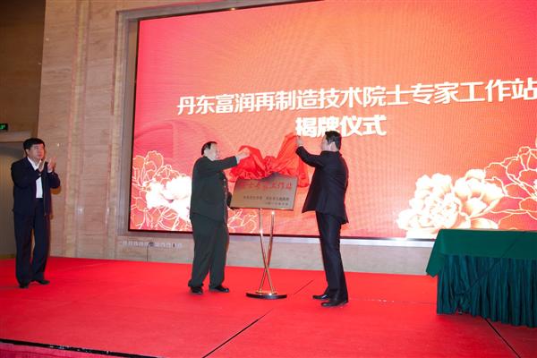 会议由副市长邱继岩主持,丹东市富润橡胶有限公司总经理王昊先生和徐滨士院士先后为大会做了致辞,徐滨士院士与中共丹东市委常委、市总工会主席耿玉礓同志共同为“丹东富润装备再制造技术院士专家工作站”揭牌。揭牌仪式结束后,徐滨士院士做了装备再制造产业专题报告,徐院士以他丰富的学识、专业的素养、独特的视角全面系统地介绍了装备再制造产业的发展概况、相关政策和发展趋势,极大增强了丹东市各界对装备再制造产业的深刻认识和丹东市发展这项产业的信心。